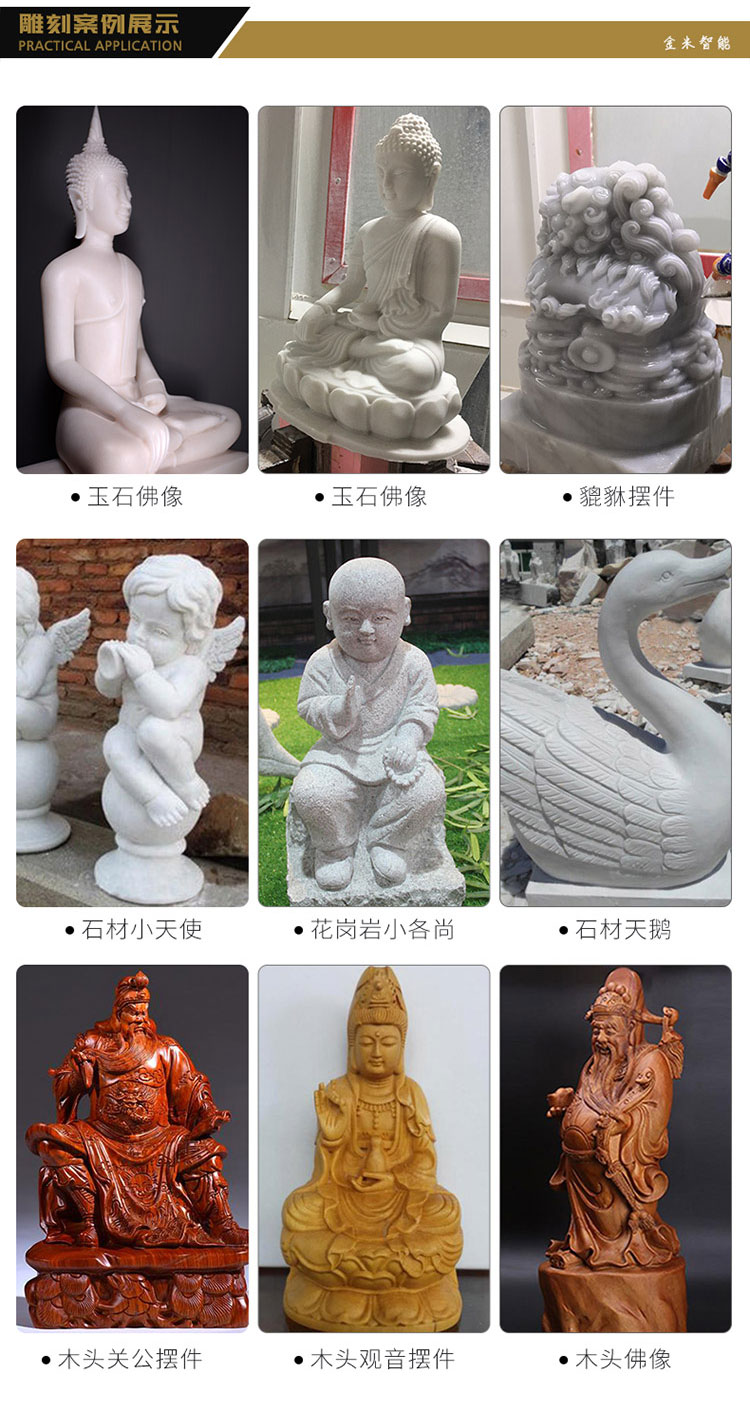 五軸聯(lián)動(dòng)雕刻機(jī)價(jià)格不高,性能方面比四軸雕刻機(jī)功能也要更強(qiáng)大,五軸雕刻機(jī)的使用廣泛于各個(gè)行業(yè),如:玉石雕刻,木材雕刻,石材雕刻,佛像大擺件,泡沫雕塑,石墨雕刻,模具雕刻,3D蠟?zāi)5窨蹋X材金屬雕刻,亞克力雕刻,立體雕刻,圓柱雕刻,動(dòng)物模型,立體雕塑以及曲面工藝品等等都可以使用五軸雕刻機(jī)。