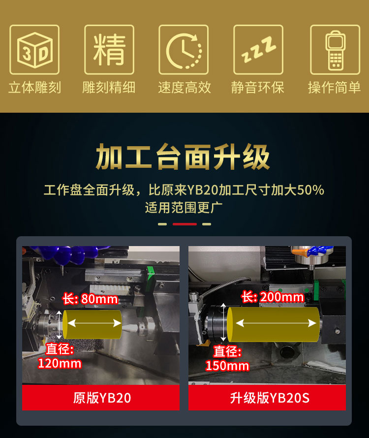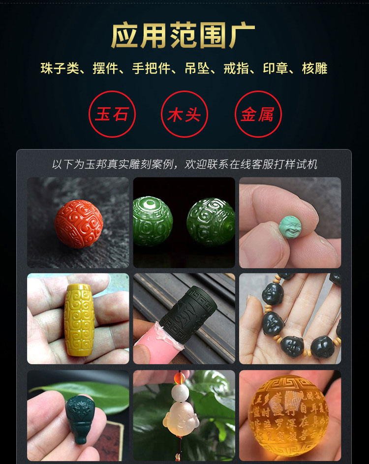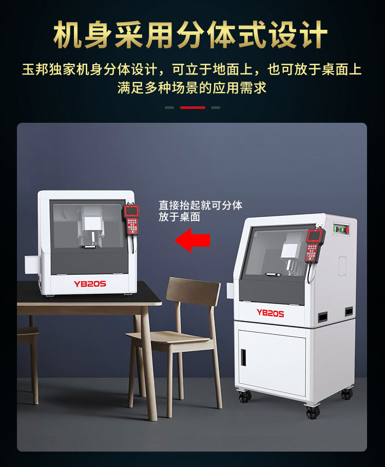 YB20是一款小型立體雕刻機,專門針對小型的立體雕刻而設(shè)計,擁有高精細的雕刻能力。適合雕刻:回紋珠子、扳指、小擺件、小手把件,吊墜掛件,橄欖核等。適合材料:翡翠、和田玉、岫玉、瑪瑙、黃龍玉、鵝卵石等所有軟硬玉以及玻璃、銀、金屬、琥珀等。整體機身迷你實用,不占空間,且機身采用分體式設(shè)計,可以獨立放置地面,也可以分體放于桌面。